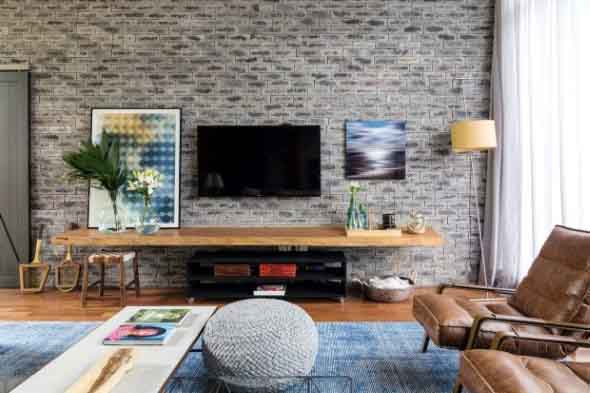 Outro uso que se tornou bem popular é o dos tijolos aparentes na decoração de interiores, como a sala de estar, o quarto ou a cozinha.
